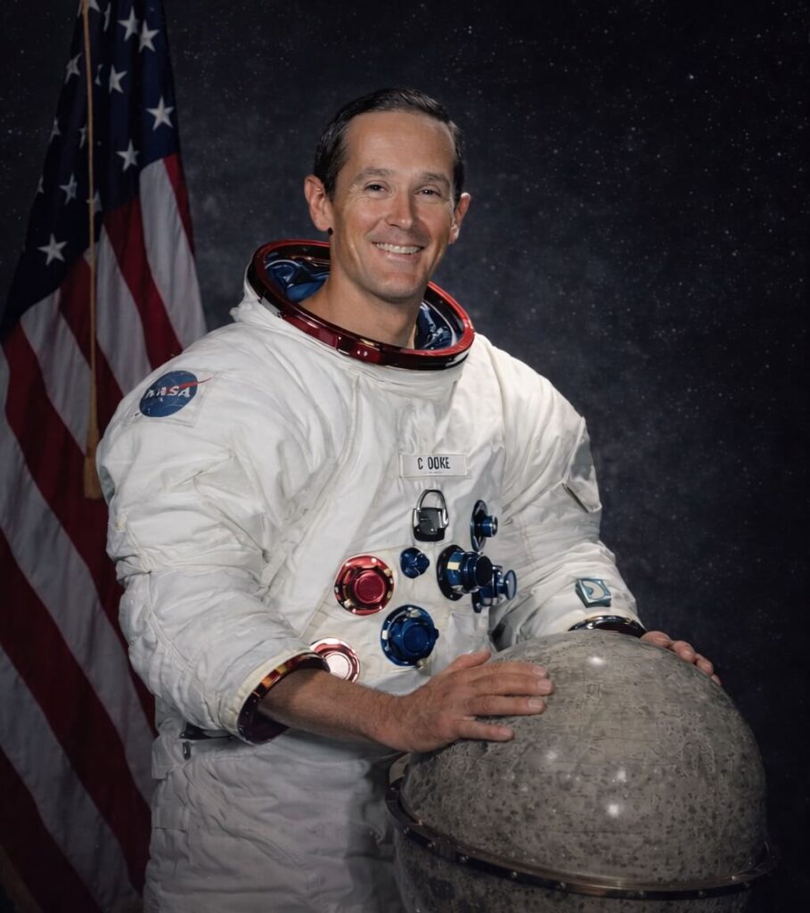 U.S. Air Force Brigadier General (ret.) and former NASA astronaut, Charlie Duke, renowned as the 10th person, and the youngest in history, to walk on the Moon during the Apollo 16 mission.